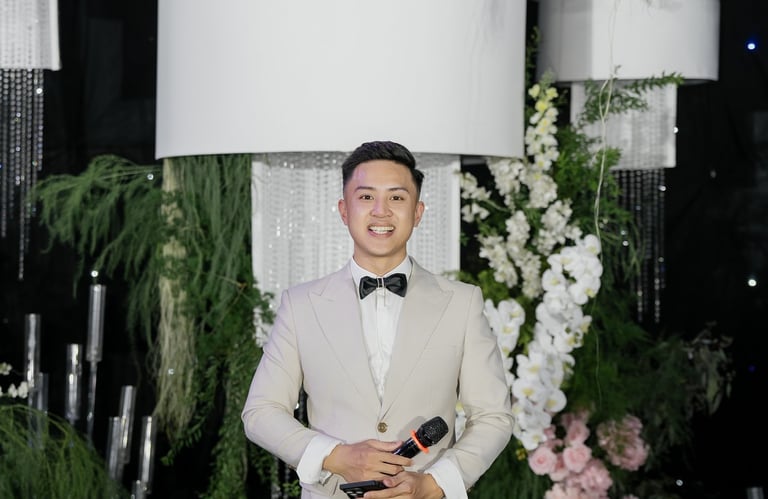 Chào mọi người, mình là Giang kể chuyện cưới. Bắt đầu từ niềm yêu thích sân khấu và sự kết nối con người. Mình đã dành nhiều thời gian học hỏi, rèn luyện phong cách dẫn ấm áp, tinh tế nhưng vẫn đầy năng lượng và cảm xúc.